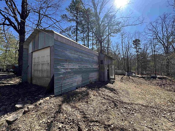 Tucked into the woods with deer at your back door, this could be your perfect retreat! Located just a couple miles outside of the city limits, this house would make a great getaway, vacation rental or your own private home. French doors open up to the main bedroom. Nestled in the trees along with a 12x18 shop building, there are so many possibilities for the price. Rural water, owned propane tank. Nice front and side porch areas to enjoy the outdoors. The land slopes and provides lots of space to roam. Just needs your loving touch in order to be a jewel. 3.17 acres.