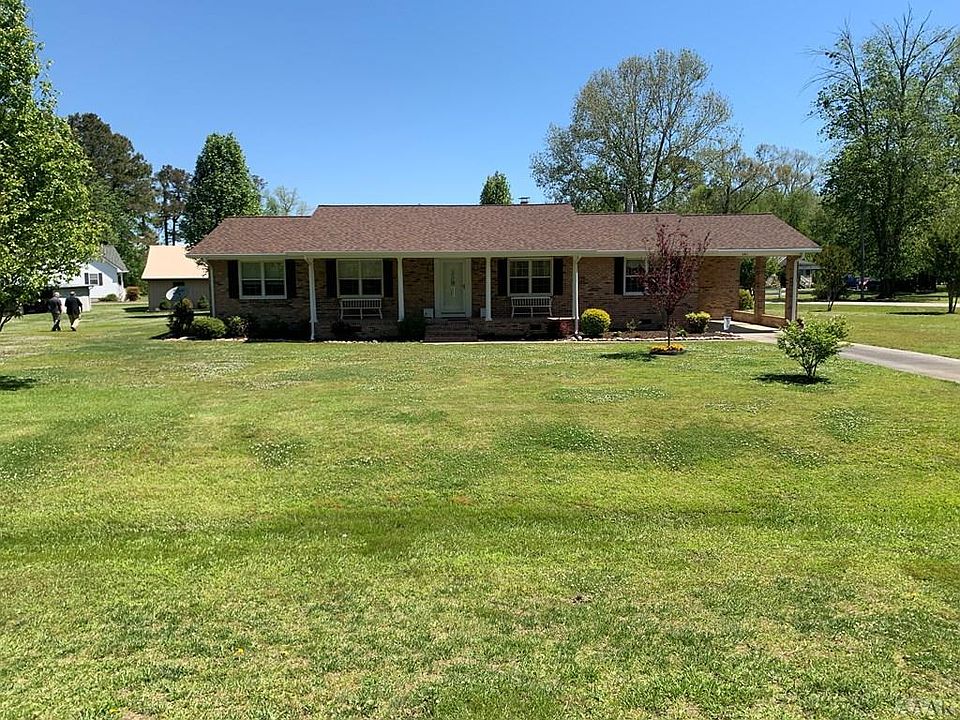 Immaculate brick ranch only 4 miles from downtown Edenton. Located on a corner (+/-) acre lot, This property features a large workshop and spacious detached 2 car garage. Interior features beautiful wood floors, fireplace, 3 bedrooms, and 2 baths. The home has a nice covered back porch.