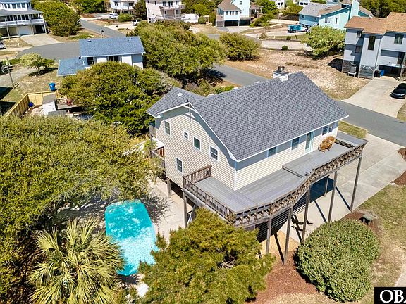 'LOCATION LOCATION LOCATION' in the center of DUCK VILLAGE with OCEAN VIEWS in X Flood Zone. EXCELLENT PROXIMITY to OCEAN will have your toes in the sand in mere minutes! A turn-key 4 bedroom 2 full bath home with wood-burning fireplace, lovely landscaping, lawn irrigation and more. Expansive rear yard with private pool, full pool bath, large patio for entertaining (add a hot tub!), privacy fence, and lovely trees add charm and great functionality for all, including  pets! A simple sweet sanctuary gently used as a 2nd home but could easily be established for rental investment this upcoming season. Park your car, you won't need it! Pop into Town on foot or wheels for shopping, sunset dining at the area's renowned restaurants, stroll on the waterfront boardwalk, take in a fitness class, visit coffee/book/wine & craft beer storefronts, and don't miss the year-round fabulous events hosted by the Town of Duck. Rental projections on file forecasting strong income numbers. Owners have been proactive in the care and maintenance of this home and have made the following IMPROVEMENTS: NEW Roof & Hot Water Heater (Spring 2025), Two HVAC systems, Exterior Paint (2023), Composite Sun Deck (2020) and more... Well water services the irrigation system. Virtual tour available. GREAT VIEWS, LOCATION & PRICE, hurry or you'll be sorry to miss this one!