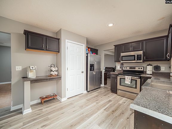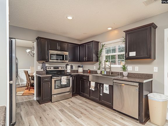 Seller offering $5,000 toward Closing Cost or Rate buy down! Plus $2500 toward carpet allowance! This stunning 4-bedroom, 2.5-bathroom home features many upgrades including a tiled entry and hallway, LVP throughout the main living area, fresh paint throughout, chair rail, and wainscoting in both living rooms. There is a spacious family room and a large den, as well as an eat-in kitchen with a farmhouse sink, LED puck lights, and a walk-in pantry. The eat-in breakfast room the French doors leads to a large backyard with a wood privacy fence. The master suite has vaulted ceilings, a private bathroom, and a walk-in closet. The two-car garage has been upgraded with plenty of storage cabinets and shelving. Persimmon Grove community features a beautiful pond with a gazebo, walking paths, a shaded playground, and a community pool, all within a short walk from the home. The property is conveniently located close to Lake Murray, shopping centers, entertainment venues, dining options, schools, and interstates.
