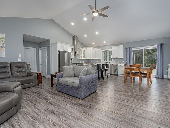 Showings start at the Open House SUNDAY Jan 12th 10:00-12:00 Seeking the ideal ranch-style home for seamless single-level living? This barely 5 year old 3-bedroom, 2-bath residence exudes contemporary elegance while embracing future-forward functionality. Step into the inviting space where your gaze is drawn to the soaring cathedral ceiling crowning the expansive kitchen/dining/family room area. The kitchen boasts sleek modern appliances and countertops, complete with a spacious center island for added prep space, storage, and seating. A slider off the dining area leads you to a private backyard. Built-in butler cabinet ensure ample storage solutions. Radiant floor heating throughout. Convenience split floor plan, with the primary ensuite bedroom ensuite nestled on one end for enhanced privacy. The primary suite features two closets, a large 5' radius floor space bathroom, ensuring ADA compliance. Two additional bedrooms with generous closet space and a full bath are located on the end of the home. Unwind on the covered front porch or on the backyard patio. The property also includes an oversized detached two-stall garage with a second-floor potential for additional storage and/or future expansion. Attic storage over primary bedroom. Whole house Generac generator. Don't miss the chance to experience this captivating one level home! Coe Brown School district