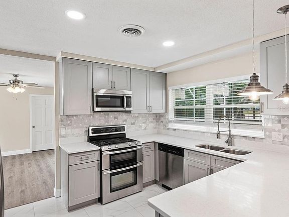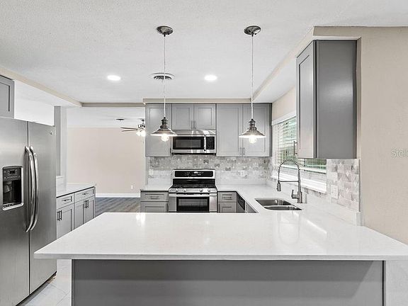 Back on the market with full rehab complete. This is a spectacularly remodeled home on a cul-de-sac with newly installed pavers and tremendous curb appeal. Pre-listing inspection was done and all discovered issues have been taken care of. The home features a lovely split floor-plan with large square footage perfect for a large family. There is a separate access to the home that can be used by anyone arriving home late and not wanting to wake anyone. The home provides four access points to the screened in pool area and has a wonderful lay out and space perfect for entertaining. There is a garage/workshop in the rear that can fit a full sized vehicle or lawnmower and tools. Lowest dollar per square foot even after rehab and with 5 bedrooms and 4 bathrooms and a pool in the area.