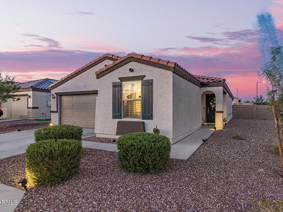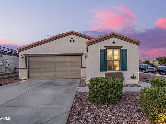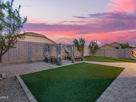 Wow! This stunning 3-bed, 2-bath residence on a generously sized corner lot is a testament to everyday comfort! You'll be delighted by the expansive great room displaying a soothing palette, plantation shutters, & sleek tile flooring that adds a modern twist. The kitchen comes w/ a pantry, pendant & recessed lighting, gleaming SS appliances, paneled cabinets, a chic subway tile backsplash, & an island w/ a breakfast bar for casual dining. You'll also find a den that provides a versatile area, perfect for an office. The main bedroom boasts plush carpeting, a walk-in closet, & a private bathroom w/ dual sinks. Enjoy breathtaking sunsets in the backyard, displaying a covered patio, pristine artificial turf, a cozy gazebo, & a convenient storage shed. Don't miss out on this opportunity! Location x's 3 with this perfect corner lot. Access to fantastic schools, close to the freeway, shopping, parks and more. What's not to love about this gorgeous house with a fantastic price point!