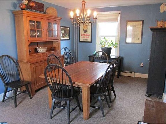 Cute and charming in-town single home in Quakertown nearby schools and downtown shopping. The gardens include an open flagstone patio and lush landscaping that leads to a detached one car garage with electric & a wood burning stove. Nicely decorated and painted throughout with remodeled bathrooms and a relaxing enclosed front porch. The large, walk-up 3rd floor currently doesn't have heat but has great potential for a 3rd bedroom or playroom. Newer windows, updated 2 zone heating and low taxes make this home very affordable for USDA, VA or FHA financing.