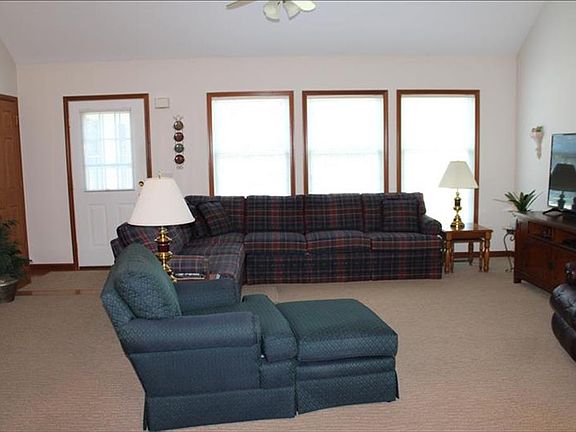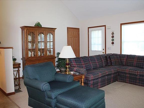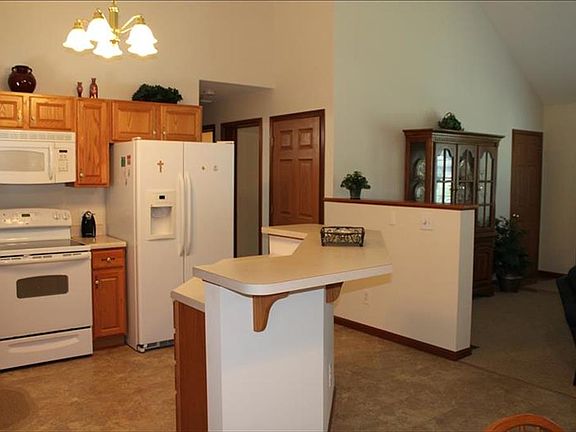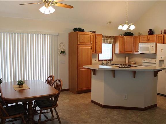 This super sweet one story home is so cute and well maintained. Nice open floor plan. Owners have recently updated master bath including all new walk-in shower & double vanity. Newer vinyl flooring in kitchen features island and plenty of counter and cabinet space. Newer carpet in LR. Oversized insulated garage w/hot & cold running water. Rear fenced yard w/ 14x14 deck is absolutely adorable. Low low utility averages! Full basement w/semi-finished rec room and gas FP.