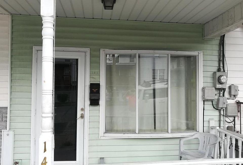 Row house in need of some repairs, fenced yard, garage, basement and attic for storage.