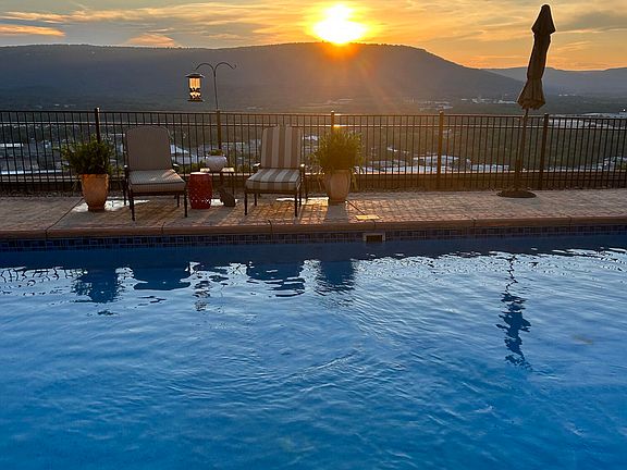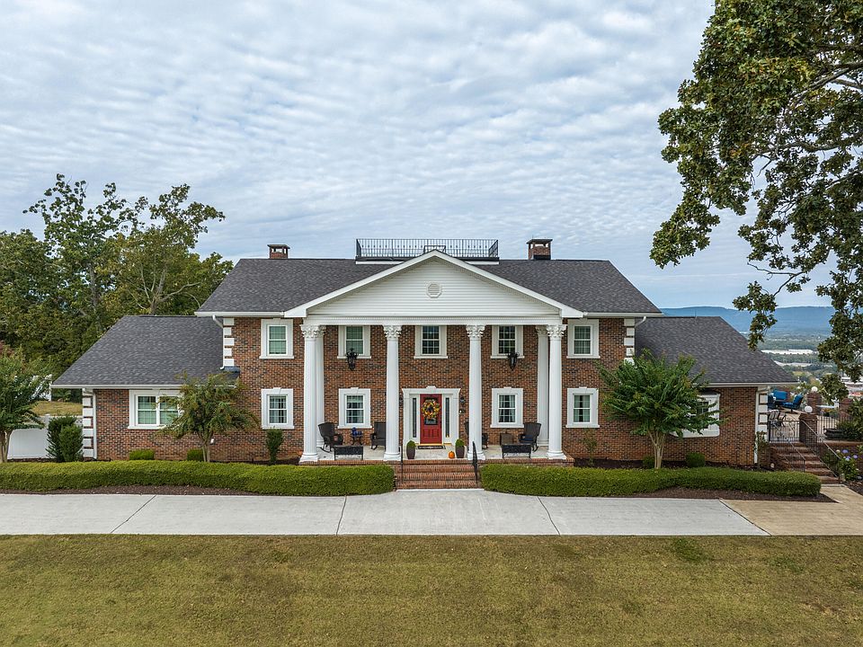 Stately brick home situated on a 1.29 +/- acre lot with a large basement, including an expansive multi-car garage, a pool and pool house, a fenced yard and scenic views in both front and back from the Georgia side of Missionary Ridge within 15 minutes of downtown Chattanooga. This traditional 3 or 4 bedroom home has been beautifully updated and now features an open and versatile floor plan with the primary suite on the main, hardwoods and tile, crown moldings, recessed and decorative lighting, an abundance of windows providing wonderful natural lighting, spacious rooms, and multiple outdoor living spaces for gathering and entertaining or simply to relax and enjoy the amazing views. Entry to the home is via the columned front porch to the 2-story foyer with a dramatic staircase, granite tile, crystal and iron chandelier and formal living to the right. The living room has a gas fireplace and opens to an office area which in turn opens to the dining room which has French doors to the kitchen and breakfast area. Two sets of French doors lead to the large side patio which also connects to the rear pool area. The kitchen has granite countertops, tile backsplash, a center island with pendant lighting and a downdraft cooktop, a walk-in pantry, access to the pool and basement, and opens to the great room. The 2-story great room also has a gas fireplace with built-ins on either side and a wall of windows to take advantage of the view. A powder room is located in the hallway to the primary bedroom which also has French doors to the rear patio and an arched doorway to the primary bath. The primary bath has a dual granite vanity, a jetted tub with decorative columns, a separate shower with tile and glass surround, one of two laundry facilities, and a walk-in closet. An adjoining bedroom suite has been converted to a dressing or sitting room with an additional commode and bidet but could be converted back if desired. The upper level has delightful arched doorways and iron railings overlooking the foyer and the great room, and a large landing/bonus room is currently being utilized as a 4th bedroom, as it has a closet and a half bath and access to walk-out attic storage. Two additional bedrooms have private baths, and there is a laundry room that services this level, as well. The lower level has an enormous family/rec room with a full bath, a hobby or exercise room, and a walk-in closet, so this space could easily be used as a guest/in-law suite if preferred. Two sets of doors have access ramps to a garage/workshop space that is carpeted and has two roll up garage doors to another garage with two double bay doors. Needless to say, great storage abounds. Head out back where you will find the sparkling pool with the mountain and city views as your backdrop. A matching pool house with a covered front porch has a sitting or changing room and the pool equipment storage room. A level, fenced side yard provides a great spot for your four-legged family members to play. Simple a fantastic opportunity for the buyer seeking a spacious home with a pool and amazing views close to schools, hospitals, shopping, restaurants, and downtown Chattanooga.