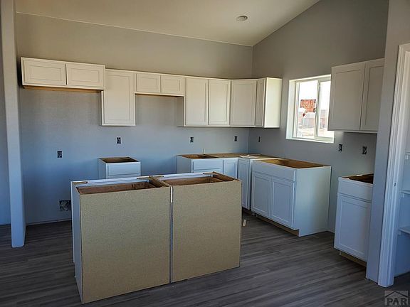 New construction in Pueblo West close to the Desert Hawk Golf Course and shopping. Three bedrooms and two bathrooms split bedroom design. The kitchen features soft-close white cabinets with white quartz countertops, kitchen island and stainless steel appliances. The kitchen has an open concept to the living room which both have luxury vinyl tile throughout and a vaulted ceiling. The master bedroom has carpet flooring, a walk-in closet, quartz countertops and tile bathroom floors/tile bathroom surround. The other two bedrooms share a full bathroom with same amazing finishes! Enjoy the outdoor space with a covered back patio. Hail Resistant roof! HOA covers the exterior insurance so you will save only need interior insurance. Landscaping in the front yard will Be Xeriscaped with rock, Bushes and a drip system.