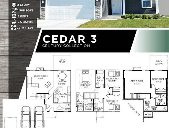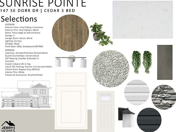 Welcome to Jerry's Homes Cedar 3 Bedroom two story floor plan with 3 car garage. The main floor features an open concept with the living area, dining and kitchen. The kitchen has upgraded white cabinets, white countertops and a large peninsula that opens up to the large living area. Half bath on the main floor. Hard surface LVP flooring throughout all of the main floor. Bedrooms and stairs have carpet. Upstairs you'll find the laundry, full bath, and 3 bedrooms including the master with master bath & walk-in closet. The upstairs bathrooms and laundry room flooring is a 12x12 tile. The unfinished basement is stubbed out for a bath and plenty of room for future finishes. The Sunrise Pointe development in Pleasant Hill is located close to HWY 5 and in a sought after location with SE Polk Schools. Save big with a 5 year tax abatement! Jerry's Homes has been building homes since 1957.