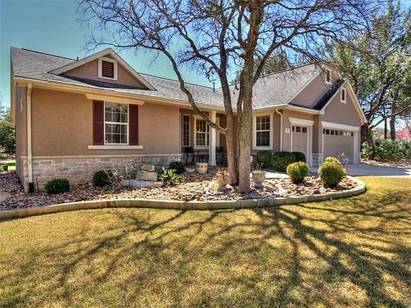 Nothing ordinary about this spectacular Salado Model. Split floor plan, open family/kitchen, 3rd bedroom with built-ins doubles as office. The custom features and designer touches throughout make this home is a standout. 18" diagonal tile, fireplace with travertine & custom wood mantle, golf cart garage and much much more. Screened patio & stone patio make this a wonderful home for entertaining inside and out. Maximum privacy as the home is situated with beautiful wooded greenbelts beside and behind.