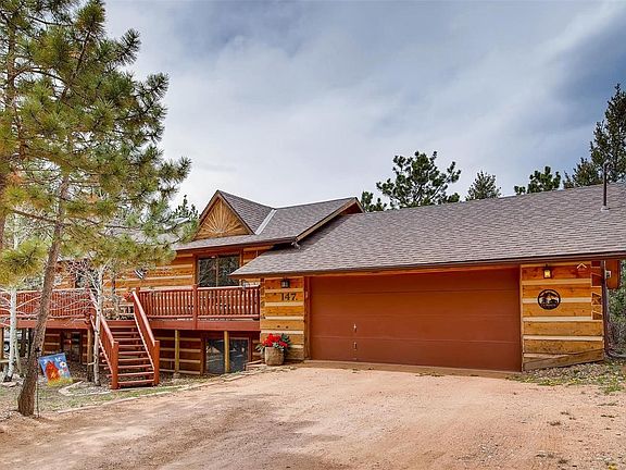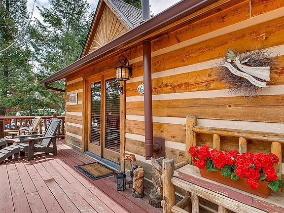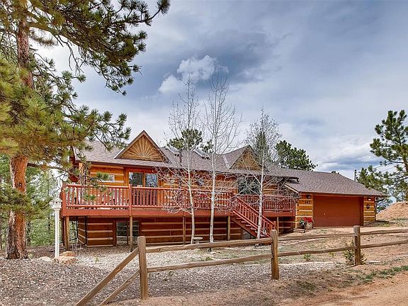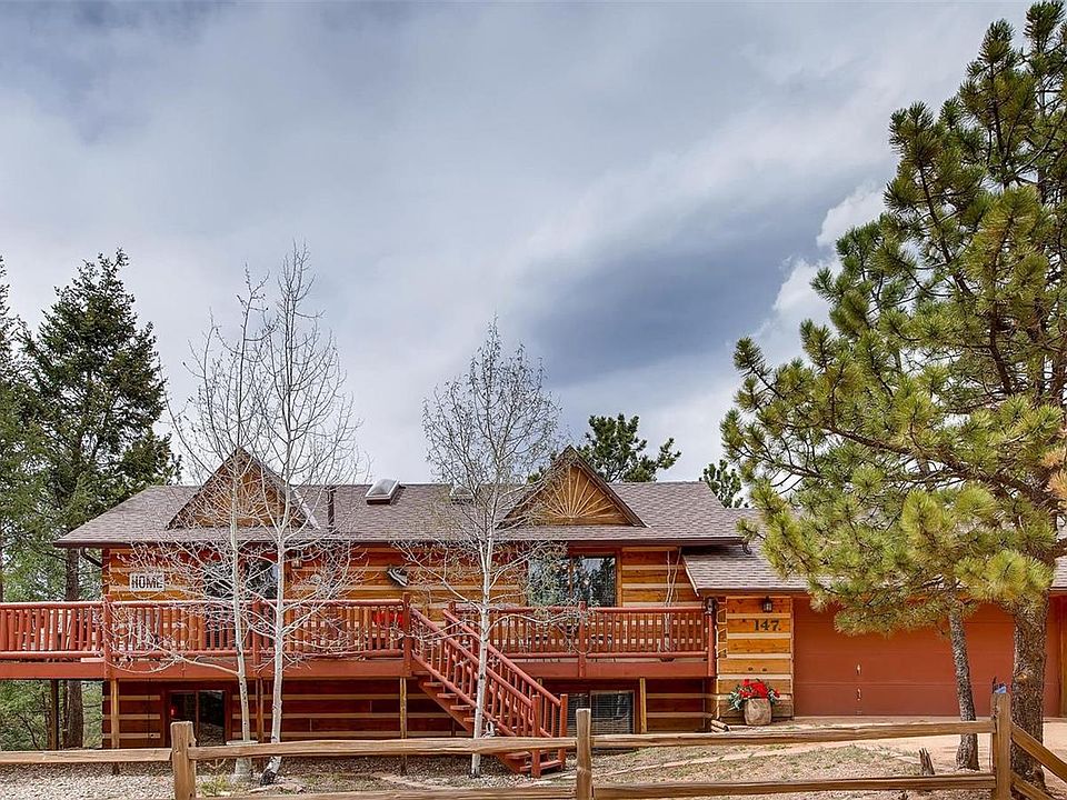 Magnificent Mountain Retreat just a few miles from Woodland Park! This charming log home sits on 1/2 acre of woods on a dead-end street just 5 miles from the heart of town. Interior has flat log & chinking walls, vaulted wood ceilings, pine planking flooring, pellet stove, ceiling fan, skylights and glass patio doors to walkout to wraparound deck w/hot tub. Granite counter tops & island, rock backsplash, stainless appliances in high end custom kitchen. All 3 garden-level bedrooms have wood beamed ceilings. Master bedroom has a walk-in closet & laundry space for convenience. There are custom touches throughout this home that reveal the pride of ownership. New roof & gutter in Aug 2018. Radon mitigation system. While you will feel like you are escaping from it all when you travel down the winding road and up the mountain, it's actually conveniently located only a few miles from a college, the hospital & town! This is the getaway retreat you won't want to miss.