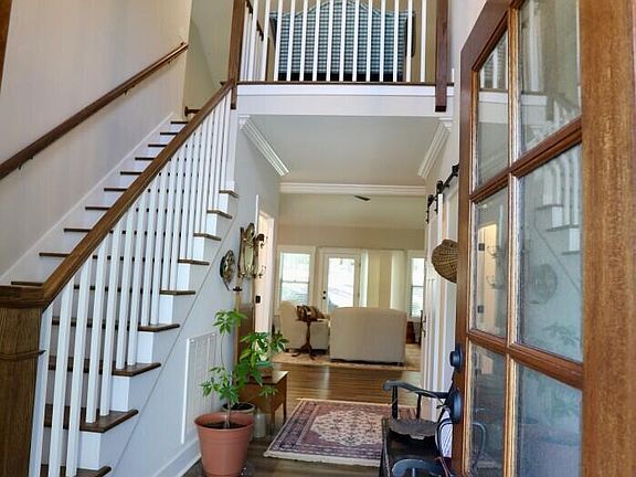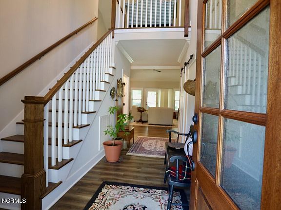 Beautiful 4 bedroom 2.5 bath home with a water view, water view is best seasonally! built by KP Quality Builders. Owners bedroom & Den on the first floor with a WIC and the laundry just off the master closet. Amazing two story foyer that is light and bright. Open floor plan. kitchen, dining and living room. Kitchen offers a great entertaining space with Pebble Gray Quartz counters, White farm sink, custom cabinets & elegant lighting above the island and a large walk-in pantry. The living room offers soaring ceilings, fireplace with gas logs. & Large dining area. Covered porch at the front door and Covered back porch with concrete with painted brick surrounds the porch just off the living room. on the upper level , 3 bedrooms, loft and full bath. Decorative window film was put on the glass on front door. It can peel off easily if your client wants clear glass windows. Lots of great amenities offered in Seven Lakes West.