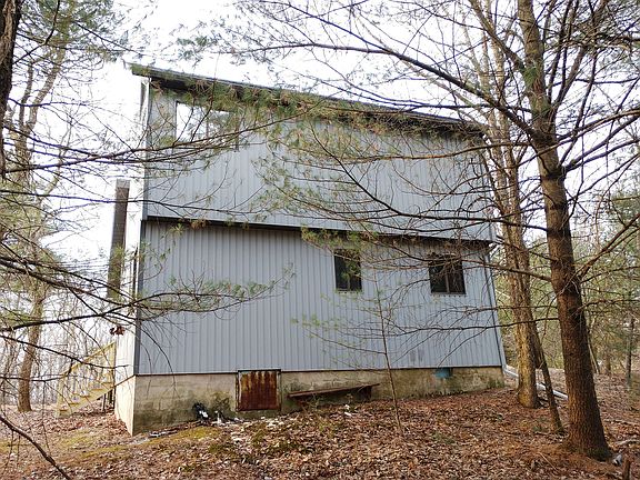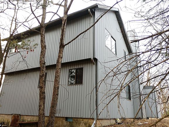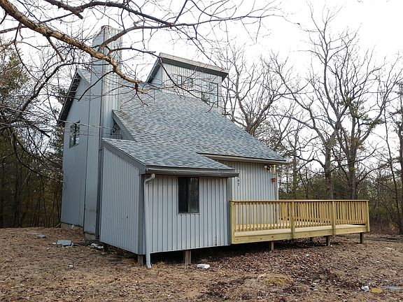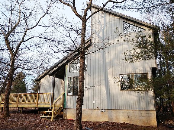 Your private, renovated, lake community, Poconos oasis awaits! This 3 bedroom, 2 full bathroom contemporary is situated at the end of a cul-de-sac and is surrounded by the forest. Make this a year round home, weekend retreat, rental property or Airbnb property. The wrap-around deck provides lovely forest and mountain views. Inside, an open floor plan allows for beautiful natural light to fill the living room, dining room, and kitchen. Neutral flooring throughout the first floor. A wood-burning fireplace with a brick mantel is the focal point on the first floor. The fully renovated kitchen features granite countertops, a breakfast bar, and new, stainless-steel appliances. A full bathroom with rainfall shower-head, laundry closet, and a bedroom with a walk-in closet complete the first floor. Upstairs, you'll find a loft area that could be an office, two spacious bedrooms, and a full bathroom with rainfall shower-head. Minutes from the outlets & Camelback. 90 minutes from NYC & Philly.