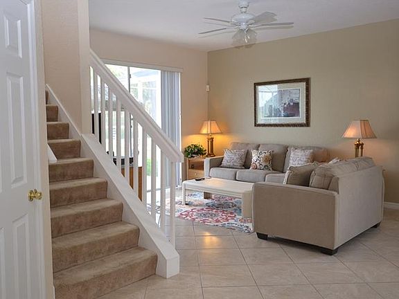 Fantastic value on the golf course. Wonderful 5 bed 3 bath golf course home in the exclusive golf community of Highlands Reserve. This very popular Engle built Monticello floor plan is situated at the end of Troon Circle, just on the loop. With stunning views of the golf course this pool deck is a lovely place to sit and watch the sun rise over the golf course. Inside the entrance area is tiled, the formal living and dining room, which is carpeted and very elegant. The kitchen/ family room is bright and airy and also is tiled and the whole area is very comfortable. There is a good size utility room leading into the garage. There is also a large bedroom and bathroom on the ground floor. Upstairs we have a very large Master suite, with ample room in the bedroom, there are 2 large walk in closets and a spa like bathroom. The other 3 large bedrooms share the main bathroom, all three are of a good size and have walk in closets. The layout of this home makes it a great choice for a family home or as a vacation home. New AC unit installed in May 2017 Highlands Reserve is an exclusive golf community situated on hwy 27 close to the Disney parks, shops and restaurants.