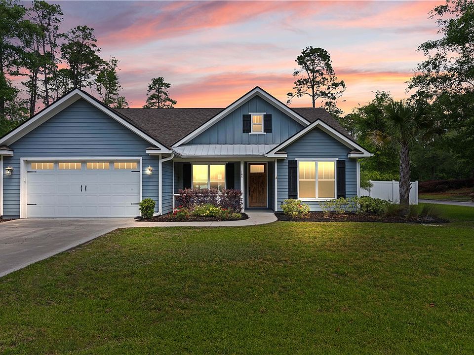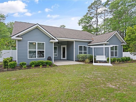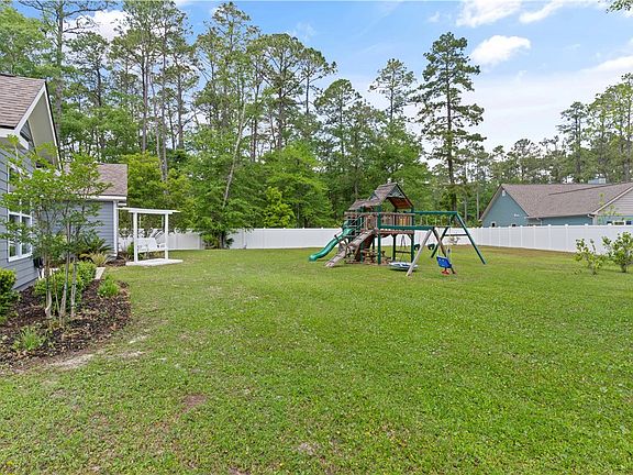 This beautiful Readdick Construction built 4 bedroom/3 bath home is located on a corner lot in the prestigious River Place Plantation. The home features a spacious Dining area, Living Room with electric fireplace - all with 11' ceilings! The Kitchen offers granite countertops, stainless appliances, walk-in pantry and breakfast bar. The primary bedroom has ensuite bathroom featuring huge soaking tub, tile shower, dual closets and private water closet. The huge backyard is completely fenced with white vinyl privacy fencing. This home has 2X6 exterior walls on 16"centers as well as welded wire and fiber mesh in the slab. River Place Plantation is a luxury gated community offering a Clubhouse w/fireplace, swimming pool and Dock. From this home you are minutes to Winn Dixie & other shopping/restaurants. This home is located within 20 minutes to FLETC and 20-30 min to Jekyll Island & St Simons Island beaches. This is zoned Camden County School system with Camden High School rated a 9/10!-