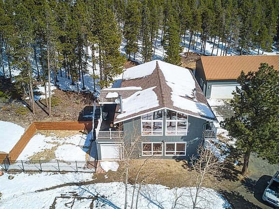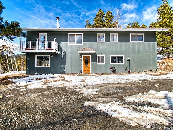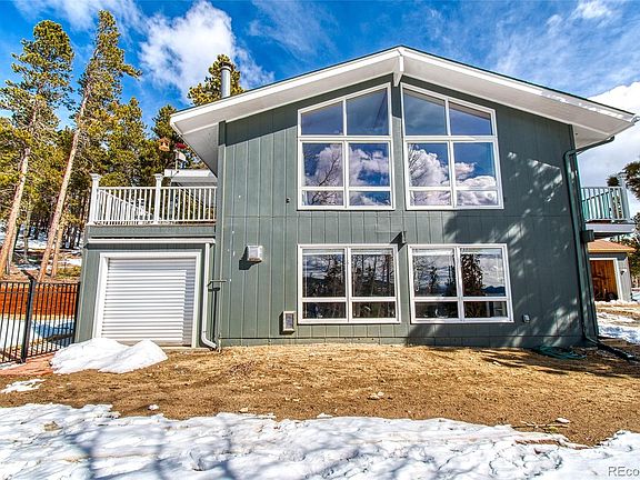 Incredible 1.5 acre lot in Black Hawk features a sunny, updated home and an oversized, insulated, and heated garage! This home offers the perfect combination of privacy and convenience as it's just minutes away from Peak to Peak Highway and in proximity to downtown Black Hawk and Nederland. This two story home has an ideal floor plan: three bedrooms on the main level and one on the lower, making it great space for in-laws or guests. The lower level features a carpeted den, southern facing windows, and a gas fireplace. A bank of southern-facing windows on the main level offer plenty of sun, light, and warmth year round while the real hardwood floors and wood burning fireplace make the home cozy and welcoming. The kitchen features newer LG stainless steel appliances and granite countertops. The home abounds with recent updates including: paint, appliances, bathrooms, and a new hydronic heating system, including boilers, piping, thermostats, and radiators installed in January 2019. The west and south facing Trex deck provides plenty of privacy to enjoy the incredible views and wildlife in the area. Covered storage is available under the deck for firewood, an ATV, or tools. Custom chicken coop and shed stays with the home! The two-door 2100 square foot oversized garage can fit an RV and up to 4 individual vehicles. The garage is partially insulated and can be heated with the gas furnace inside. The garage has an amazing amount of overhead and shelving storage for all your cars, tools, and toys. The neighborhood roads are plowed and maintained by the County and utilities are easy and economical (natural gas, electricity and Internet). This is an amazing mountain home that offers modern amenities in a serene setting. Check out the 3D Matterport Tour or call for a Virtual Showing!