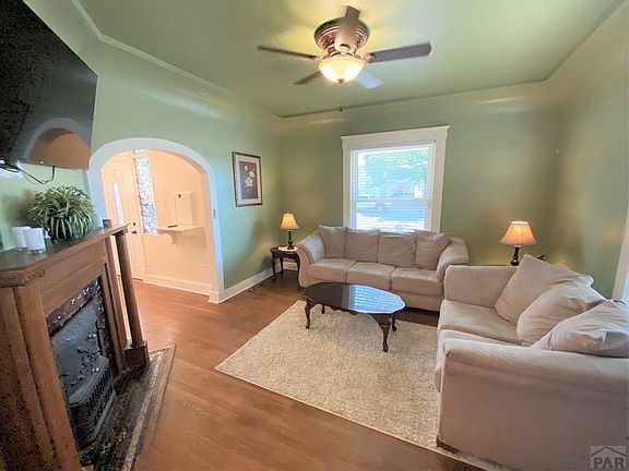 This corner lot property could be a great investment opportunity, for an AirBnB! Close to the Reservoir, State Fairgrounds, the Riverwalk and Historic Union District! This 2-story home, built in 1903 has been updated alwhile keeping its' old school charm. As you walk through the front door you will find yourself in a large freshly painted foyer with a white hall tree, shoe cubicle coat rack and a staircase leading to the second floor. The living room features a Van Briggle Pottery fireplace, that has been converted to gas. Ceiling Fans in every bedroom and living room, Kitchen has LVP flooring, new paint, cabinets, countertops, dishwasher and microwave. Main level bedroom has a window AC unit. Upstairs: Bathroom has a new double-vanity, new tub/shower, toilet and paint - Large Master Suite has Bay Window. and all rooms and hallway freshly painted and are on a new sub-panel - each bedroom is on it's own circuit now (seller's were doing this work in order to make the upstairs bedrooms rent-able, as you will see with the numbers on each doorway). Throughout the house windows are double-pane vinyl and are framed with freshly painted large moldings - new carpet and window coverings also. Transom windows, replaced with designed etched glass, Exterior painted in 2021 - including the detached double-garage. Great large shed in the backyard for storing all your seasonal tools and decorations!