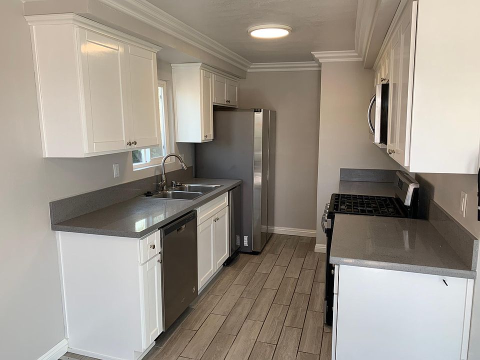 Completely remodeled large 3 bedroom / 2 bath unit with large private deck and partial ocean view. Walk to downtown and the beach! Entirely new kitchen and bath cabinets and quartz counter tops. Stainless steel appliances: Stove, oven, fridge, washer included. Completely renovated bathroom and new fixtures, custom vanity. New flooring and mirrored wardrobe doors. Garage parking. Ceiling fans in each bedroom. New windows and screens. On-site coin operated laundry. Please contact Patrick at SC Property Management. Approval subject to credit and background check. 1 year