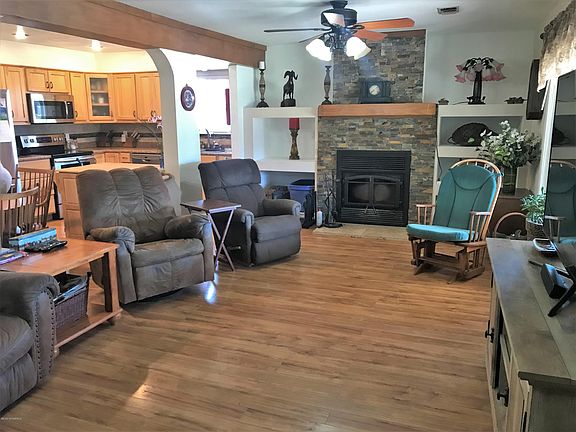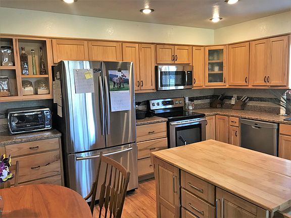 Unique Country property on a beautiful tree coverd acre that's close to downtown. Warm and Cozy 2 bedroom 2 bath home with wood stove and modern kitchen. 1.1 Acres irrigated propery with it's own well. A separate studio/potential guest house that's 324 sq.ft with water and electricity. A large barn out back and a chicken area. Plus there's a workshop, carport and pump house. Relax and enjoy the great views of the mountains and back property from the large covered porch.