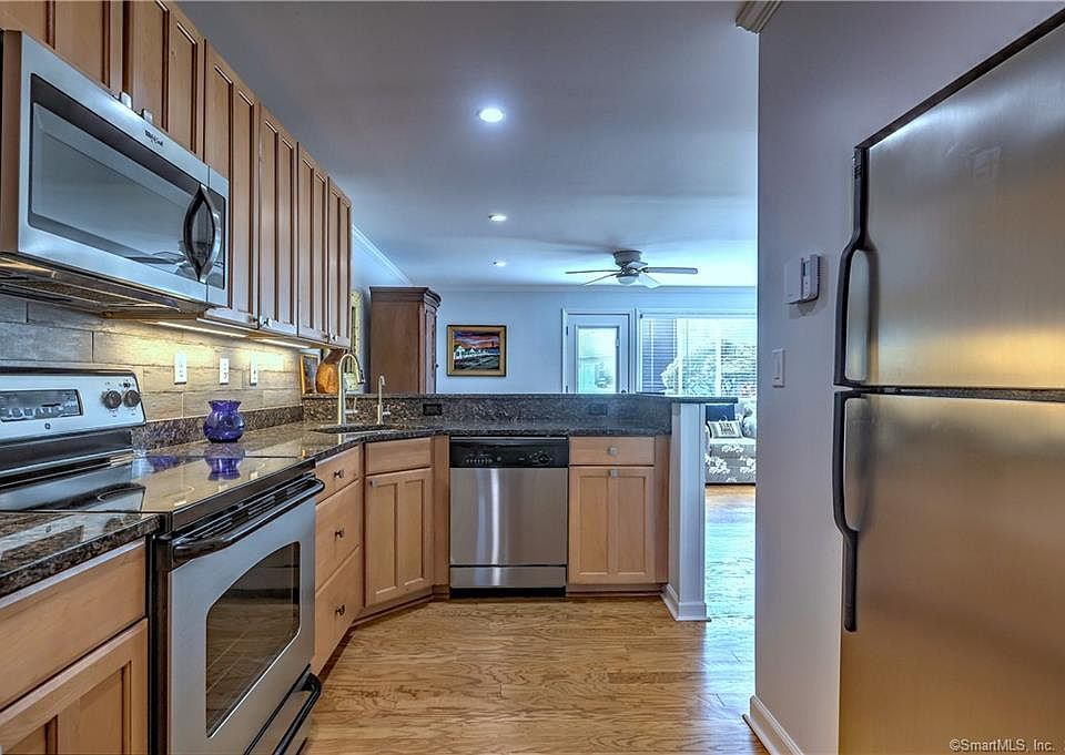 - Features: Remodeled, Breakfast Bar, Granite Counters, L-Shaped, Hardwood Floor