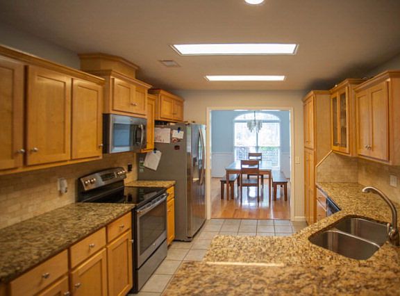 This inviting 2532 square foot home is move in ready! With 4 bedrooms and 3 baths, you are welcomed into the foyer which opens up to the great room and formal dining room featuring bead board, wainscoting and a beautiful chandelier. The great room features built in cabinets, hardwood floors, cathedral ceiling and is open to the beautiful eat in kitchen with tile floors, granite counters, all new stainless appliances and tons of extra storage built in.