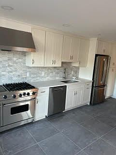 New kitchenViking stoveWood floorsHigh end materialsStainless steel appliances