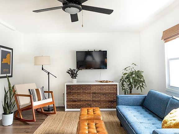 Located in the heart of historic Kingston, The Uptowner is a stylishly renovated two-family home offering an outstanding opportunity for investors––or owner-occupants looking to offset their mortgage. The property features two separate units, each with its own entrance and all utilities separated, including water & sewer. On the lower level is a roomy one bedroom unit, accessed from the rear of the house, while upstairs is a two bedroom unit, entered from the front door and up an interior stairwell. With a new roof in 2018, and gut-renovation in 2020, the building features all new interiors, new mechanicals, laundry and dishwashers in both units, and fresh kitchens and bathrooms. The building also features covered off-street parking, and a grassy fenced yard backing up to woods. Residing in the flexible T4 Neighborhood zoning code, this property allows for full-time/non-owner-occupied short-term rental, subject to Sec 405.21.D of Kingston's zoning code. The first floor is currently used as a high-performing, and fully-licensed, short-term rental. All furnishings in this unit are available for purchase, making it a turnkey opportunity for a new owner. The upper unit is long-term tenant occupied, with tenant vacating April 30. Based on income from the building's current use as a mix of both long-term and short-term rentals, the property is priced at a very healthy 9.7% CAP Rate. Could also easily be converted back to a single-family home, as well. Whatever you choose, you can't lose!! Don't miss this low-maintenance and cash-flowing opportunity in prime Uptown Kingston––convenient to shopping, dining, parks, public transit, and bus service to/from NYC.