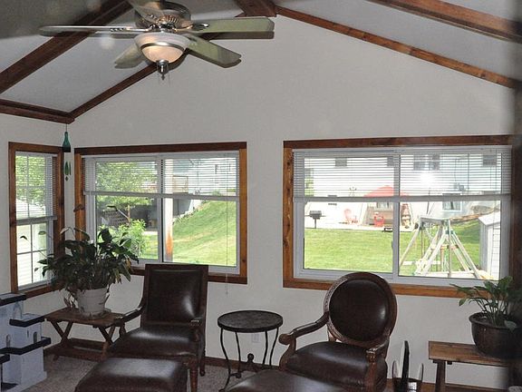 The great feature of this home is the 12x15 heated 4 seasons sunroom off the kitchen w/ lots of windows. Sharp 3 BR/1.5 BA ranch has lots of oak cabinets in the kitchen, large bay window in the LR, & custom oak built-in cabinets in the LL recreation room. Hardwood floors in the LR, hall, and all BR's. Updated windows, exterior doors, siding, gutters, countertops, & kitchen sink. Basement includes large recreation room w/ one side perfect for theater room & the other side has custom oak built-in cabinets. There is a non- conforming BR w/ sharp wood floors, laundry area, & half bath. Front & rear porches, detached garage, patio area, & storage shed. All appliances included as well as the washer and dryer. Home warranty is included.