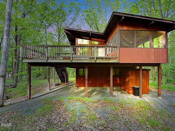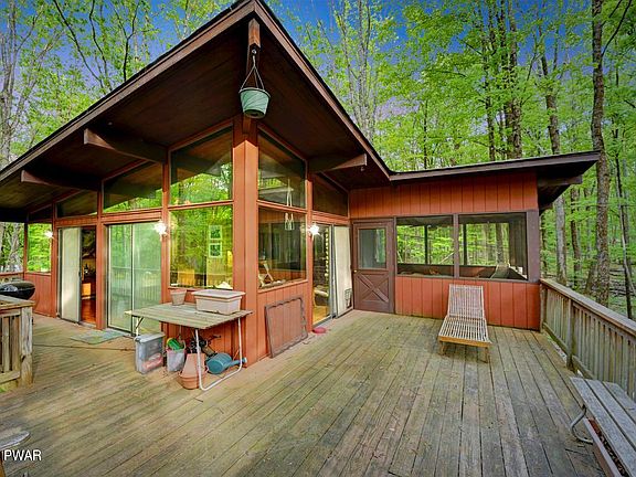 Welcome to your tranquil retreat in the heart of the Pocono Mountains, nestled within Hemlock Farms, a vibrant community brimming with amenities. This charming prow front home welcomes you with its rustic charm and promises a lifestyle immersed in nature's beauty.Step inside to discover a spacious open floor plan adorned with hardwood floors that whisper tales of timeless elegance. With three cozy bedrooms and two bathrooms, there's ample space for relaxation and rejuvenation.As you venture through the home, the inviting living area beckons with a wood-burning fireplace. Large windows flood the space with natural sunlight, creating a warm and inviting atmosphere throughout.The screened-in porch and wrap-around deck invite you to bask in the serenity of the outdoors, while the oversized lot of over 1 acre, provides plenty of space for outdoor activities and to enjoy the fresh mountain air.While this home awaits your personal touch and updates, its potential is boundless. Customize and reimagine the space to create your ideal mountain retreat, where every day is filled with the joys of nature and tranquility.Located in Hemlock Farms, residents enjoy access to a wealth of amenities, including swimming pools, tennis courts, hiking trails, and community events, fostering a sense of community and belonging. Escape the hustle and bustle of city life and embrace the peaceful ambiance of mountain living in this charming retreat. Welcome home to Hemlock Farms, where endless possibilities await amidst the beauty of the Pocono Mountains.