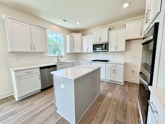 MOVE IN READY!!!1/2 mile from Angier line. Large .3 of an acre lot on city sewer/water. The open entryway leads to an open concept kitchen, living space. The kitchen features quartz countertops, a gas gourmet cooktop w/double ovens!!! The kitchen overlooks an extended breakfast area and the family room. This home has an extra space that can be used as a formal dining/den or study! The owner's suite is a standout feature of this floorplan, offering an expansive walk-in closet, dual vanity, and oversized shower.