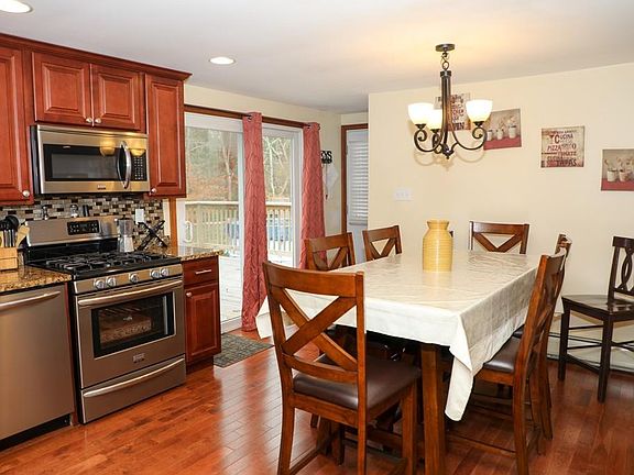 Totally remodeled in 2015. Beautiful kitchen with granite counters, tiled backsplash and new cabinets, recess lighting and stainless steel appliances, and sliders to a large deck. Living room with hardwood floors and a closet. 3 bedrooms with wall to wall carpet. 2 full baths all remodeled. Wood stove in basement. Large private fenced in yard. 2 car detached garage with heat. Over an acre of land. A must see!
