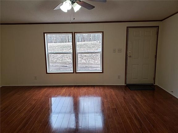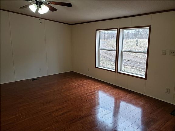 Governors driveway leads up to this three-bedroom ranch on 10 acres of wooded splendor in Moniteau School District. Vaulted ceilings throughout give the whole house a spacious feel. Trendy laminate flooring in the living room and new carpet in the bedrooms. Largest bedroom has en suite facilities. Kitchen has new stainless appliances and the cabinets are in great condition. First floor utility room. New roof! Generous sized full basement can be fully finished for extra living space and has French doors leading to rear patio where you can sit and enjoy watching the wildlife.