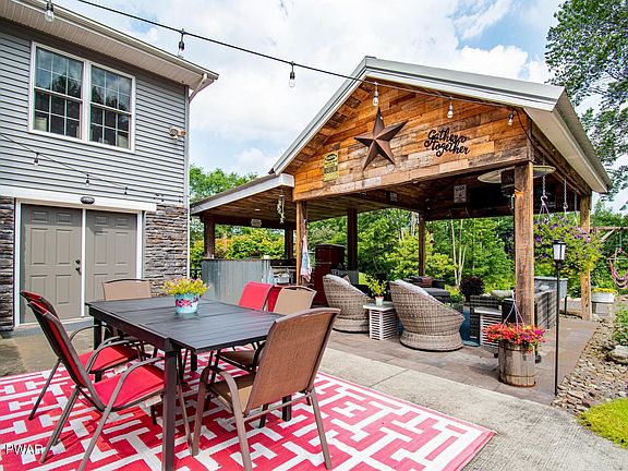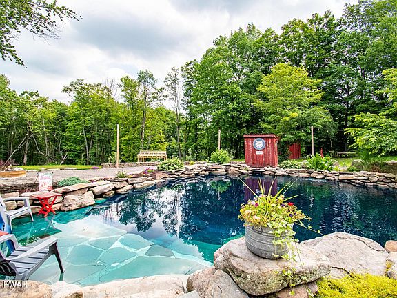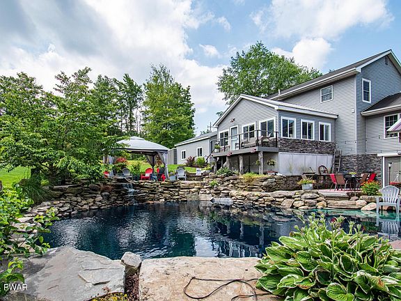 This extraordinary colonial residence, boasting four bedrooms and three bathrooms, stands as a peerless masterpiece amidst its surroundings. Nestled on two sprawling acres, the property unveils a private pond with a mesmerizing waterfall, a distinctive in-ground pool, and a spacious outdoor gazebo with an entertainment area. Two oversized garages and a lower level custom bar contribute to the opulence of this unique abode. Approaching this residence is akin to entering a realm of unparalleled sophistication and meticulous craftsmanship. The exterior reveals an inground pool that seamlessly emulates a small pond, accompanied by a meticulously constructed gazebo pavilion overlooking a pristine spring-fed pond. A handcrafted patio, personal balcony, and dual large garages further enhance the grandeur of the property. The interior is equally enchanting, featuring luxury flooring adorning every room, subtly complemented by brick accents. Crafted wooden cabinetry imparts a warm and exquisite country feel throughout the home. Multiple expansive living spaces are thoughtfully designed to create a harmonious flow. The main level encompasses a convenient laundry room, dining area, and kitchen. Ascending to the upper floor, four spacious bedrooms provide retreats of serenity, while three bathrooms, each on a different level, seamlessly blend functionality with style. Descending to the finished lower level, one is met with awe-inspiring transformation. This space has evolved into an entertainment haven, featuring a meticulously crafted custom stone and wood bar that attests to the craftsmanship evident in every inch of this residence. Whether hosting gatherings or indulging in a night in with guests, this space caters to every whim and desire. From the meticulously landscaped exterior to the luxurious interior finishes, this property defies conventional expectations, offering an immersive experience that words can only begin to convey. Come see for yourself!