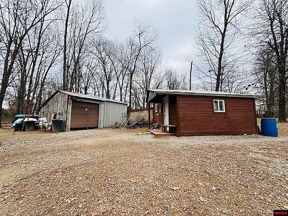 Uncover your ideal escape just outside Mountain Home with this one-room cabin, ideally situated on 10 unrestricted AC M/L of level land. This rustic haven is perfect for weekend getaways or dream home, equipped with electricity, a private well, and a septic layout for future expansion.  Enjoy the wildlife and explore numerous maintained walking trails on your level land, savor fresh blackberries and admire blooming dogwood trees in the Spring. With raised garden beds and a handy outbuilding for storage, this property offers endless potential. Whether you dream of building your ideal home or seeking a rustic hunting retreat, this picturesque property is a must-see.