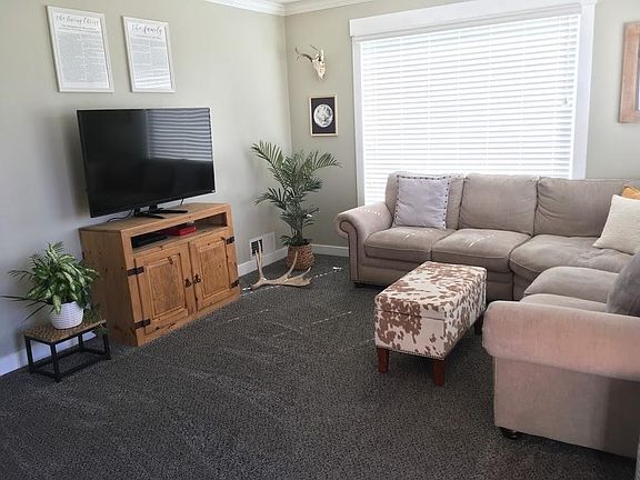 $1100 a month. 3 bedrooms (2 bedrooms upstairs, 1-bedroom downstairs) newly remodeled kitchen, 1 full bathroom with brand-new bathtub/shower, fully fenced spacious yard including a garden, 2 apple trees, 1 peach tree, 1 cherry tree, and grape vines. Beautiful mountain views, large covered patio, and fire pit.
