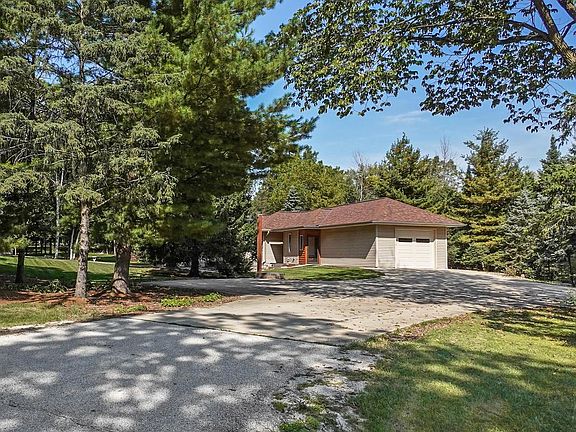 Amazing home and setting on a gorgeous 1 acre lot in the City of Oconomowoc! This remarkable property features a one-of-a-kind ranch home set on a wooded lot with huge outbuilding. Interior includes a finished lower level. Main level has custom kitchen with butcher block breakfast bar and appliances included. Wood-burner stove in living room. Vaulted dining room has walls of windows and nature views. 2 large bedrooms on the main level. Patio off master and dining room. Deck off bedroom 2. Lower level includes 2 dens/BRs with larger windows and opportunity to add egress windows, full bath, kitchenette area, and exercise room. Attached garage plus detached garage/workshop with attached shed and walk-up upper level. Large yard includes private patio and firepit area. Excellent location!