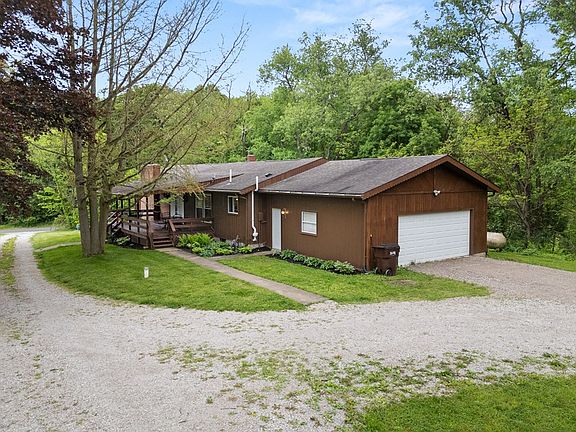 This homey Ranch offers a serene escape, just across the street from Clear Fork Reservoir. 3 outdoor, covered decks make for seamless indoor-outdoor living. Enjoy fruit trees, berry bushes and endless skies on 3 acres, perfect for gardening and stargazing. The spacious kitchen and cozy fireplace create the ideal setting for entertainment and relaxation. The lower level offers a spacious rec room and beautiful woodwork. Store all your toys in the 24 x 32 extra garage. Walking distance to public land ideal for hunting, fishing, and birding. Escape to this idyllic retreat!