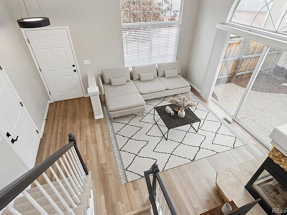 Freshly renovated, this stunning home has quality workmanship and "news" galore! Low maintenance living has never looked so good! Open the door to this gorgeous see-through floor plan with an incredible vibe! No expense was spared in this modernization! The two-story living room has a two-sided fireplace and direct access to the side patio and xeriscaped yard. This home flaunts stylish new paint throughout, Coretec Plus 5” x 48” LVP flooring in the main body of the house, complementary Shaw Champagne tightly woven carpet on the stairs, new black light fixtures and hardware throughout as well as all new blinds. The kitchen boasts white cabinets, slab granite counters, a new tile backsplash, brand new stainless appliances and a prep island with storage. The dining room is surrounded by windows and can easily seat six. The primary bedroom is private, has a walk-in closet and includes a secondary access to the hall bathroom. Both the upper and lower full bathrooms have been completely remodeled with Coretec Pro Plus Enhanced 12” x 24” tile, new vanities, tubs, tile work and more for a whole new feel! The lower level has another bedroom for a great privacy situation, and it also has a flex room, ideal for a home office or family room. The garage is ample for two cars and has good ceiling height for plenty of storage. Mechanically, the home has also been well-maintained with new furnace and A/C units installed in summer 2024. The sump pump and water heater were replaced in 2022, while the master water shutoff was done in 2021. What more could you want than this special home? In addition to all the Highlands Ranch amenities, The Villages sub-association simply makes life easier with landscape maintenance of common areas and front yards of homes, snow removal of common areas, walks, driveways and porches. They also maintain fences that border streets and fence gates. A pool and hot tub just down the block are popular perks! Dare to dream but hurry as it won't last long!