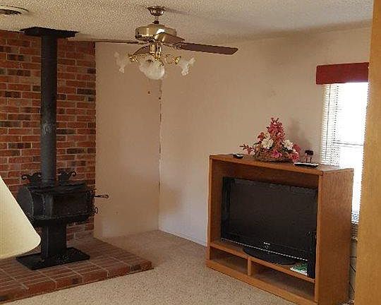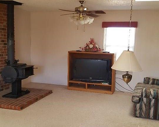 Enjoy the views from this nice brick home with open floor plan on 1.25 acres. Wood burning fireplace in living room, wood stove in the kitchen , large size bedrooms, office & laundry room. Metal 2 car detached garage, 20 x 40 RV garage/shop with roll up doors. Wired for 30 & 50 amp. Central heating & cooling, new septic & gas lines approx. 4 years old. 14 x 70 1973 Western Manor manufactured home conveys with property.