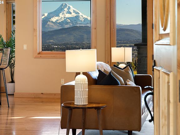 An exceptional property that feels like the top of the world! Own a piece of paradise with expansive views that will leave you in awe every day! Perched on an acre of land with unobstructed & unrivaled views of Mount Hood, the Columbia River, Underwood mountain & frequent rainbows! Entertain in the gourmet kitchen with Blum German hardware, a gas range, two dining areas, a spacious great room. The home boasts massively vaulted maple ceilings, beautiful maple wood floors throughout & views from every window! Single level, open floor plan, 4 bedrooms, 3.5 bathrooms. A detached garage with 5 bays! Guest quarters above the garage & ample flat/paved parking. Experience one of the Columbia River Gorge's quintessential settings with views, privacy, sprawling lawn, and an outdoor patio. Luxury living at its finest, schedule a tour to see this extraordinary property today! Open House Sat & Sun 12-2PM THIS weekend!