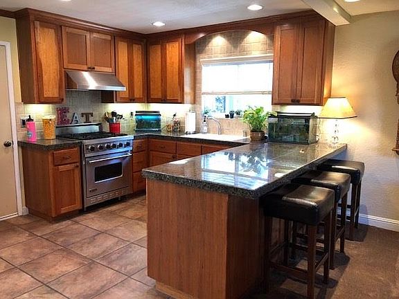 Adorable home in move in condition! Beautifully remodeled kitchen with stainless steel appliances, Viking cooktop, custom cabinets, built in china cabinet, or extra cabinets for storage, new carpet, separate office or dining area, custom cherry wood hardwood flooring, can lighting, Nuvo water softener system and much more ! Huge backyard with BBQ area, room for pool or possible RV Parking. Front yard is nicely landscaped with mature trees and hardscape.Perfect home for a young family, located in a quiet established neighborhood! Close to schools, shopping and stores!