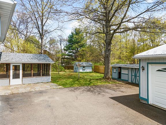 Just look at this location! This is like your own private oasis on a cul du sac. This home is set on 1/2 an acre but it seems like so much more. Outside find an oversized heated 2 car garage with a workshop, a carport, 2 sheds and a playhouse! There is a babbling brook with a footbridge that runs through the property. A new privacy fence along the rear adds to your feeling of seclusion. Inside find 4 bedrooms with the potential of having a separate living quarter in the LL. This home has 2 full kitchens and 2 full baths, but is indeed not a 2 family home. Upstairs find refinished hardwood floors and fresh paint throughout. The bathrooms are updated and don't miss the fact there are BRAND NEW roofs ( 1/23) on all of the buildings and home inspection too. Kindly remove your shoes for showings. No appointments are needed, just call your favorite REALTOR to get permission. We want to make it easy to see this property and get new owners in by summer!