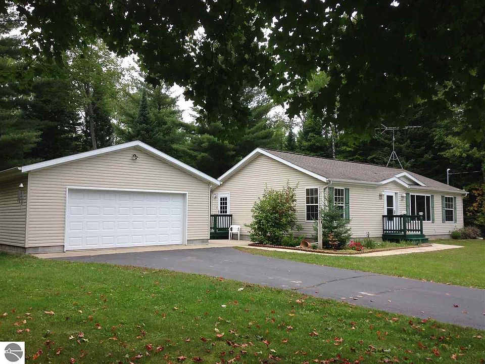 A great setting for this immaculate three bedroom, two bath home on 2.13 acres! Move in condition, you'll love the new kitchen, vaulted ceilings, paved drive, rear deck, two car garage, and quiet paved road location! This is perfect for almost any need. Starting out, retiring or snow-birds? This could be the one for you! Central Air, cement patio, and lots more!