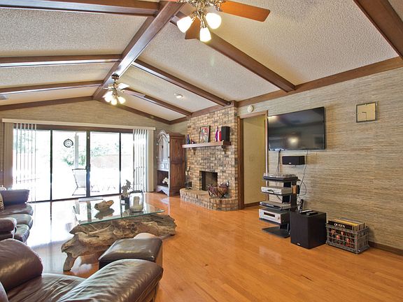 Welcome home to this four bedroom, two bath pool home. This is a spacious split plan with lots of room in the fenced in backyard. You enter into living room that features a cozy fireplace and beamed vaulted ceilings. The formal dining room has large windows that overlook the front yard. The kitchen is located in the center of the home and has a dinette area with bay windows that overlook the pool and backyard. The master bedroom is generously sized and includes a walk in closet, private bathroom with his and her vanities, a walk in shower and the bedroom has French doors that connect to the patio and pool area. The remaining three bedrooms are located on the opposite side and share the second bathroom that has dual sinks, a shower bathtub combo and a pool access door. There is an interior laundry room that connects to the two car garage. The backyard is huge and is fully fenced. Enjoy relaxing on the covered patio area or taking a swim in your private pool. Schedule your private showing today.
