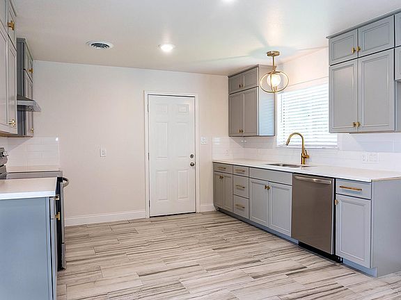 Lots of updates on Longfellow! Wood look tile is throughout except bedrooms have carpet. Kitchen has beautiful quartz counter tops, stainless appliances and is open to the breakfast and den areas. Living is so spacious that there is room for a dining area or study. Primary bath has double sinks and large shower. French doors lead to the patio. Nice neutral colors throughout!