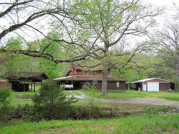 Ozark Country Home on 9.52 Acres For Sale This country home with acreage, located near Leslie, AR in the central Ozarks, has two creeks; one in front of the house and one behind. There is a hilltop on the south end of property with water, power and concrete slab in place and a great mountain view. There are two sources of water for this home; one is from an old established spring and the other is a new rural water system. Large shade trees and water running over rocks in a private setting provides a peaceful and quiet atmosphere. The four bedroom, two bathroom home has a main floor with three bedrooms, two bathrooms, kitchen, dining room, den/family room, office and laundry/utility room. Upstairs opens up into a large room and has several bonus spaces for storage or extra bedrooms. Part of the interior of the home needs some work to be completed. There is a one car carport attached to the house and an additional detached carport. A large storage building with a garage door has ample space for storage of equipment as well as a workshop area. A small sawmill is already in place and ready to use.  Conveniently located near Arkansas Lakes and Rivers This central Ozarks country home with acreage is conveniently located between Leslie and Marshall, Arkansas. The Buffalo National River is less than one hour away and offers many opportunities for canoeing, kayaking, hiking, and camping. Greers Ferry Lake is approximately one hour away with many water attractions including fishing and boating. Branson, MO is approximately two hours away with many tourist attractions.