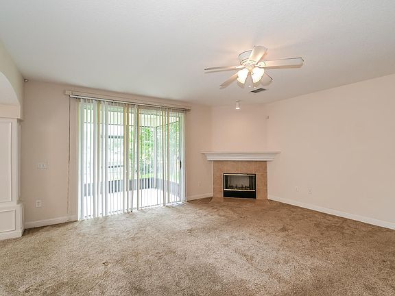 This Orange Park two-story home offers a wood-burning fireplace, a loft, a back patio, and a two-car garage.