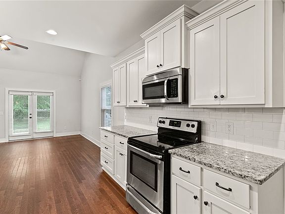 PRICE DROP! This 3 bed, 2.5 bath has all the curb appeal! This is a great home for entertaining. The kitchen has a big island, pendant lights, granite countertops and stainless steel appliances. It opens up to the living room with tall ceilings, a beautiful brick fireplace and great natural light. The master bedroom has wood floors, tons of closet space, a ceramic shower and dual vanities. There is a bonus room upstairs perfect for a kids play space. The covered back porch flows perfectly into the brick patio with a natural gas hook up. There is a creek running behind the house so you don't have to worry about anyone building there. Don't miss this house in a wonderful neighborhood! SELLER IS OFFERING $3,000 IN PAITING ALLOWANCE