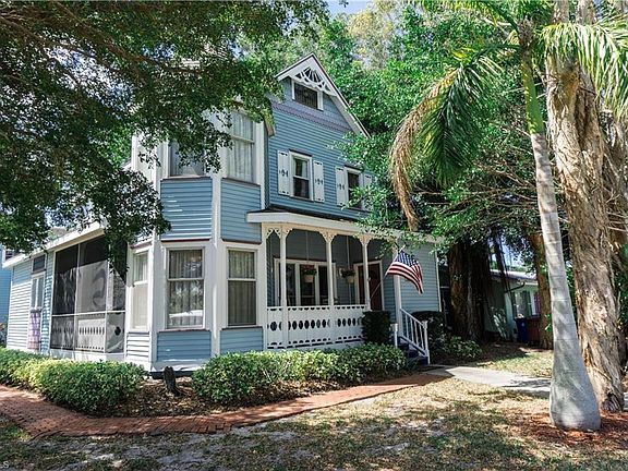 Fall in love with this charming one of a kind Victorian home located off McGregor Blvd. Located less than a mile to all the events and shopping in the historic river district of downtown Fort Myers. The home features wood floors, stained glass windows, intricate wood work and a stunning wood burning fireplace. The kitchen has a vaulted ceiling with skylight, gas stove, and even a cozy breakfast nook. A new wall oven, dishwasher and microwave were just installed! Upstairs the master suite is truly breathtaking at two stories tall! Surrounded by windows you feel like you are in a fairy tale! There is even a private loft, great for relaxing or a home office. The adjoining master bath with dual vanities and walk-in shower has been recently updated and is in keeping with the original character of the home. Entertain year round in the private, shaded courtyard with built-in bar and pergola. Surrounded by large trees and strung with Edison bulbs the ambiance is incredible day or night. There is also a huge bonus space with a separate outside entrance with its own bath. Make it your own: Guest suite, art studio, home office or game room. Fantastic location near the Fort Myers Country Club.