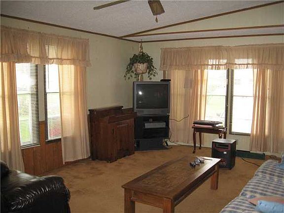 Very nice mobile home with double wide great room area with living room, eating area and kitchen. Newer carpet, appliances, furnace, etc. Some handicapped accessibility, Home could be moved.
